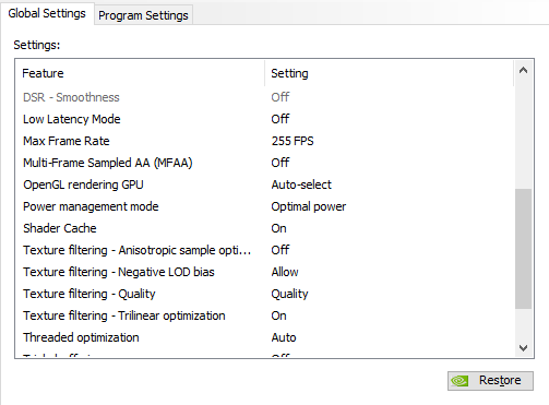 Global setting.png (17.49 kB . 503x371 - viewed 1534 times)The fps in game are set to 255 but the screen shows it doing 60 as seen in the call of duty screen shot
